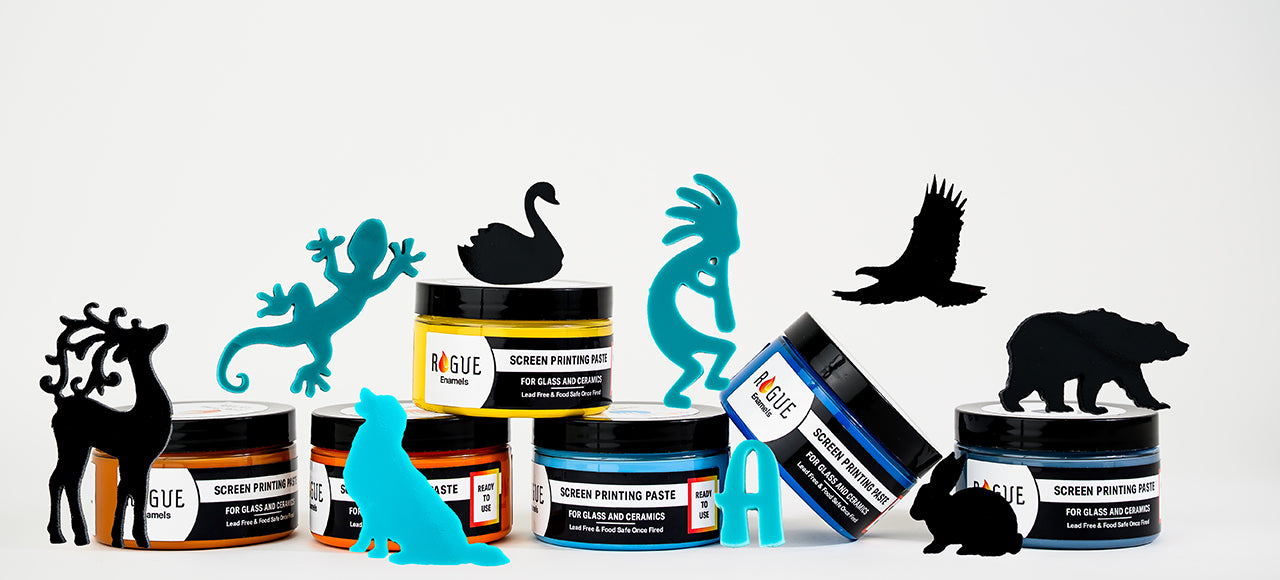 Fuse Muse Fused Glass is the exclusive manufacturer of Rogue Screen Printing Paste—the only source in the world where artists can purchase authentic Rogue Paste for screen printing on glass and ceramics. Formulated specifically for kiln-fired artwork, Rogue Paste delivers brilliant color, sharp detail, and consistent results once fired, making it a trusted choice among glass and ceramic artists.