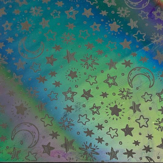Stars and Moon Etched Dichroic Glass