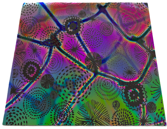 Cosmic Blooms Etched on Dichroic Glass