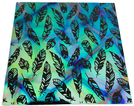 Feather Pattern Etched Dichroic Glass