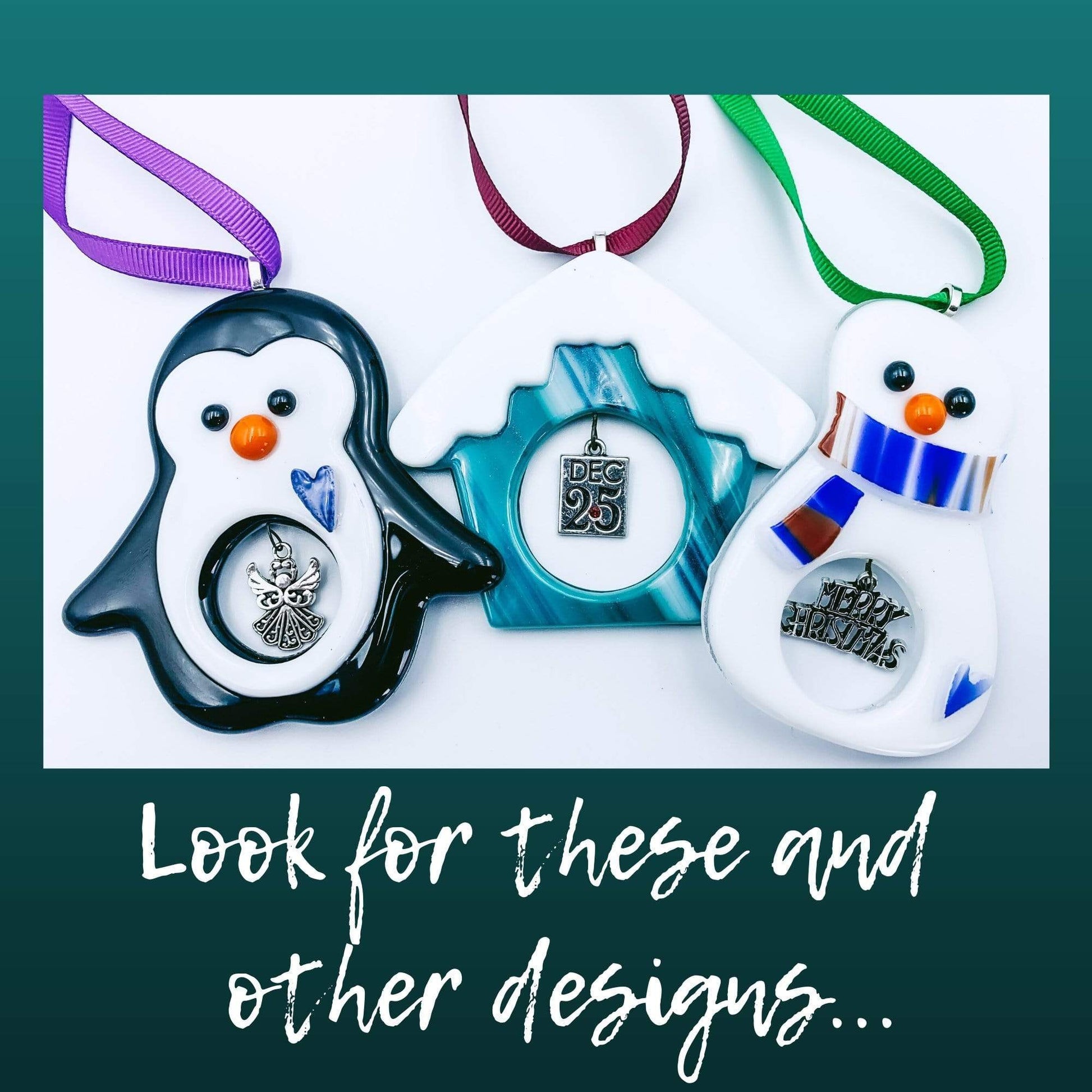 Hand painted like the night sky, made from fused glass and kiln fired in my home studio, Manny is looking for a holiday tree to adorn so that he can help spread some Christmas season joy.