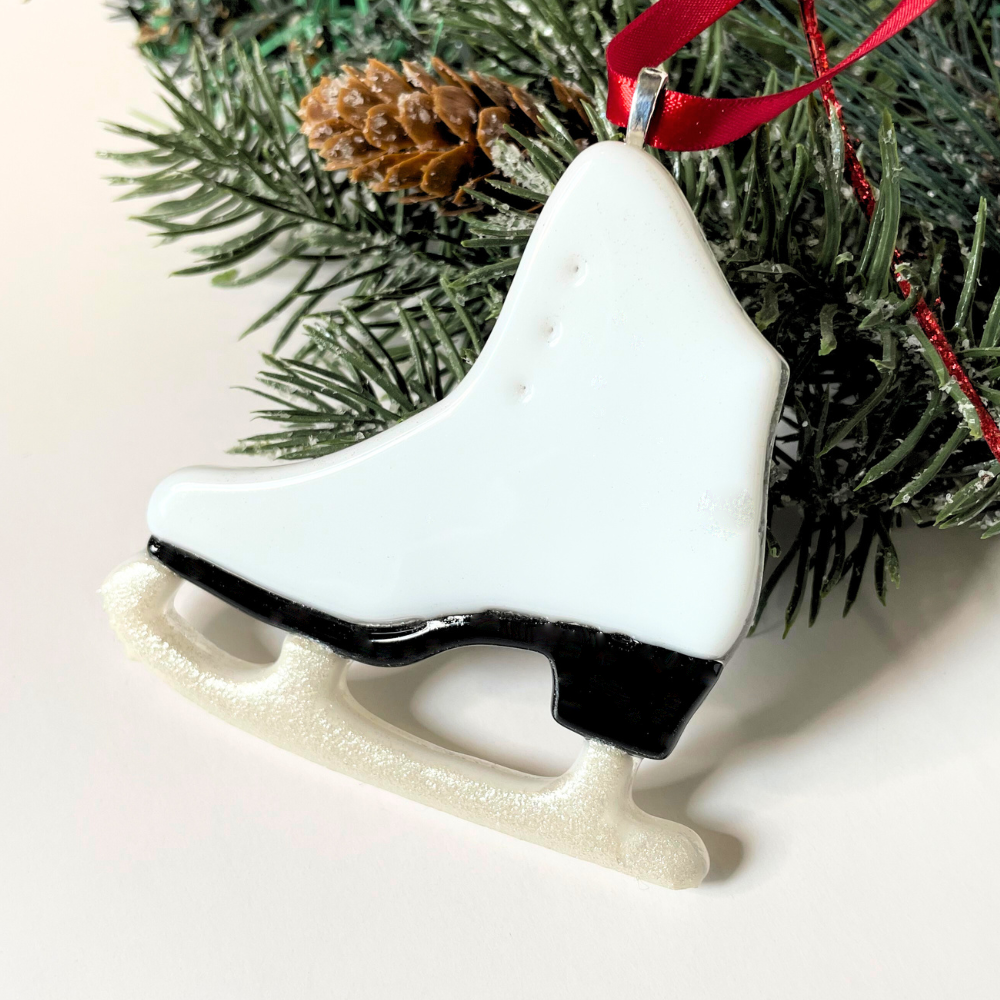 Handcrafted Ice Skate Fused Glass Christmas Ornament